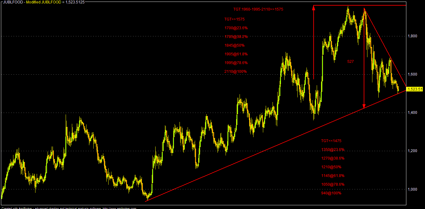 Note: Consecutive closing below 1440 for any reason, JFL can fall up to to 1415-1385-1360 & 1265-1230 zone, where investors can again accumulate for better buying average.